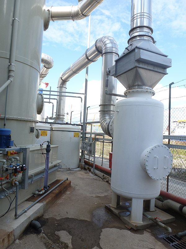 Polluted air treatment system deriving from work on the oil recovery system. The proposed process is aimed at removing sulfur compounds and volatile organic compounds from the air captured by the various points of the plant.