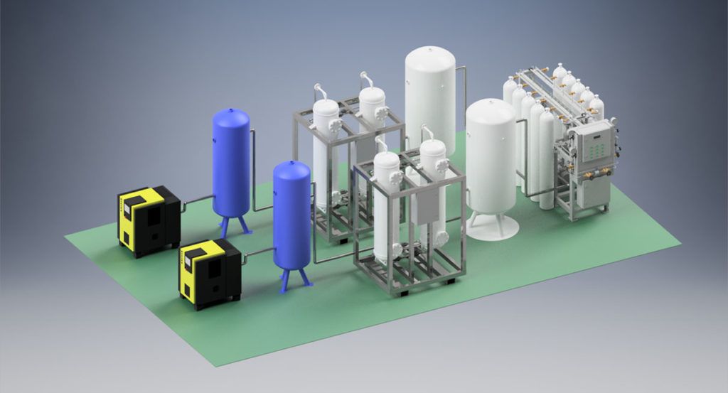 VPSA è progettata per una produzione in serie che varia da 200 a 3000 Nmc/h
