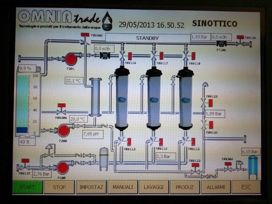 Ultrafiltration system, as a pre-treatment for a resin demineralizer system, fed with mains water.